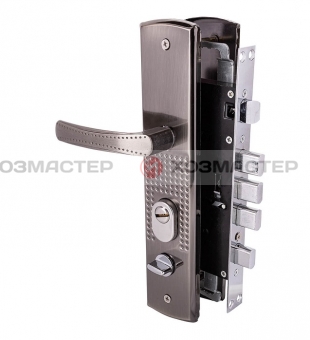 Врезной цилиндровый замок с 3 овальными ригелями, защелкой и задвижкой в комплекте с ручками предназначен для запирания металлических дверей китайского производства.