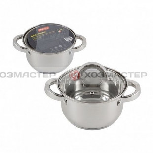 КАСТРЮЛЯ НЕРЖ. 1.9Л "MEDIANO" КРЫШКА СТЕКЛО, 3-е ДНО, НЕРЖ. РУЧКИ "MALLONY"