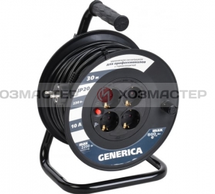 УДЛИНИТЕЛЬ-КАТУШКА 4-гнезд С З/К кабель 30М "GENERICA"
