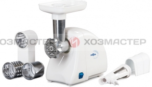 Мясорубка электрическая (электромясорубка) РОТОР-ЭКСТРА-Р ЭМШ 35/250-3 с функцией РЕВЕРСА (дополнительные насадки-малая овощерезка и соковыжималка) предназначена для приготовления мясного или рыбного фарша. Данная модель снабжена функцией РЕВЕРС : для предотвращения уплотнения продуктов внутри мясорубки предусмотрен режим обратного вращения шнека. Электромясорубка РОТОР-ЭКСТРА-Р ЭМШ 35/250-3 поможет также натереть, нашинковать или тонко нарезать овощи, фрукты и сыр. Мясорубку РОТОР-ЭКСТРА-Р ЭМШ 35/250-2 также можно использовать как соковыжималку для ягод, мягких фруктов и овощей. Тип мясорубки – шнековый. Напряжение питания 220 В, потребляемая мощность 250 Вт, производительность при приготовлении фарша не менее 35 кг/час, максимальная мощность 1500 В, режим работы-продолжительный, масса 2.1 кг, габаритные размеры 234х150х210 мм., Корпус мясорубки и приемного лотка для продуктов изготовлены из прочного пластика белого цвета, на нижней части корпуса расположены прорезиненные ножки для до