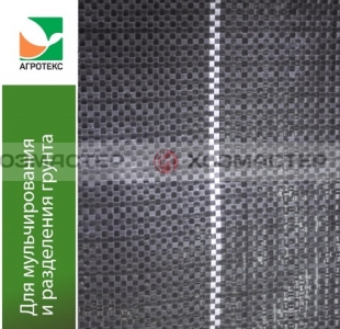 УКРЫВНОЙ МАТЕРИАЛ "Агротекс" 100гр/м² ПРОФФ ГЕОТКАНЬ (1.6*50М) ЧЕРНЫЙ с БЕЛОЙ СТРОЧКОЙ ШАГ 20см