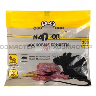 БРИКЕТ ОТ ГРЫЗУНОВ ВОСКОВОЙ 100гр. "NADZOR"
