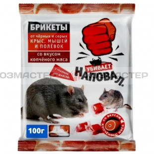 БРИКЕТ ОТ ГРЫЗУНОВ ТЕСТО-брикеты 100гр. "Наповал" (вкус копч. мяса)