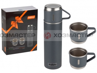 ТЕРМОС 0.5Л НЕРЖ. "MALLONY FESTA" 3 КРУЖКИ В КОМПЛЕКТЕ СЕРЫЙ