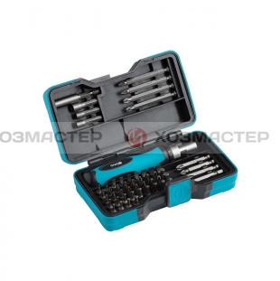 Набор бит и трещоток Olmo с рукояткой (53 шт.) - универсальный комплект для профессионального и бытового использования. Подходит для работ с различными типами крепежа, обеспечивая комфорт, точность и надежность при закручивании. Все элементы набора изготовлены из прочной хром-ванадиевой стали (CRV) с пескоструйной обработкой, что гарантирует высокую прочность и устойчивость к износу. Реверсивная отвертка с трещоткой позволяет легко переключаться между режимами закручивания и откручивания, а магнитный удлинитель обеспечивает удобство при работе в труднодоступных местах. Комплектация: - Реверсивная отвертка с трещоткой; - Магнитный удлинитель 60 мм; - 3 торцевые головки (4, 5, 6 мм); - 40 бит по 25 мм: PH0; 2×PH1; 3×PH2; 2×PH3; SL2.5–SL7; PZ0; 2×PZ1; 3×PZ2; 2×PZ3; HEX 2–6 мм; TORX T8–T40; - 4 биты по 50 мм: PH1; PH3; PZ1; PZ3; - 4 биты по 75 мм: 2×PH2; 2×PZ2. Преимущества: - Прочная сталь CRV с пескоструйной обработкой; - Удобная реверсивная отвертка и магнитный удлинитель; - Большой выбор бит и головок; - Универсальность для любых задач - от сборки мебели до ремонта техники.