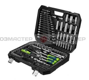 Набор инструментов Сибртех 14170 упакован в пластиковый кейс и состоит из 215 предметов с присоединительным размером 1/2", 3/8", 1/4", предназначенных для монтажа и демонтажа резьбового крепежа с разными типами шлицев. В комплект поставки входят карданы, удлинители и переходники, облегчающие работу в труднодоступных местах. Набор используется для ремонта автомобилей, а также будет полезен в быту.