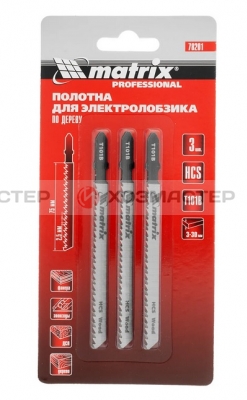 ПОЛОТНА Д/ЭЛ.ЛОБЗИКА ПО ДЕРЕВУ 75*2.5мм T101B (3шт) "MATRIX" 78201