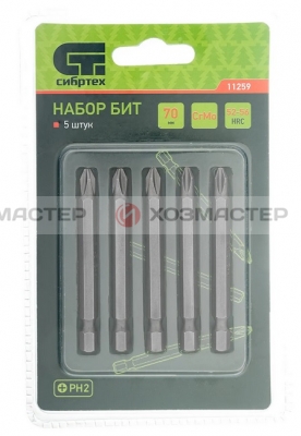 БИТЫ PH2- 70мм "Сибртех" (5шт-блист) CrMo (11259)