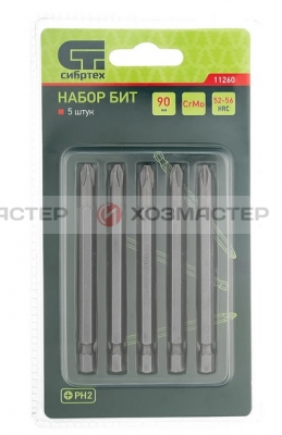 БИТЫ PH2- 90мм "Сибртех" (5шт-блист) CrMo (11260)