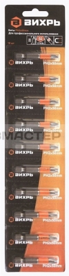 Набор бит PH2 50 мм (10шт), Вихрь - предназначены для использования в качестве насадок в шуруповёртах, аккумуляторных отвёртках, ручных и реверсивных отвёртках со сменными насадками.