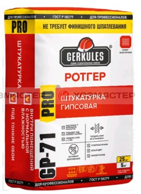 ШТУКАТУРКА ГИПСОВАЯ РОТГЕР 25кг "ГЕРКУЛЕС" GP-71 (Новосибирск)