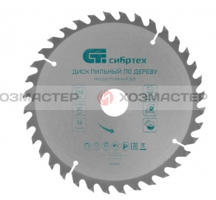 ДИСК ПИЛЬНЫЙ ПО ДЕРЕВУ Ø210*30мм 36T "СИБРТЕХ" 732907