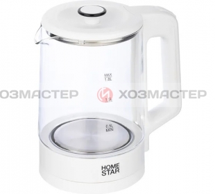 ЧАЙНИК СТЕКЛО 1.8Л ДИСК 1500Вт "HOMESTAR" HS-1008 БЕЛЫЙ