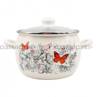 КАСТРЮЛЯ ЭМАЛЬ 3.5Л "ЯБЛОНЕВЫЙ ЦВЕТ" (ЛЫСЬВА)