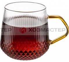 Кружка AROMA 435 мл из боросиликатного стекла с рельефным корпусом, с ручкой из цветного стекла