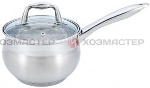 2,1л/16см, толщина стенки 0,5мм, дна 2,5мм.Ручка из нерж стали. Крышка стеклянная, матовая поверхность с зерк. полосой. Мерная шкала на внутр. стенке, капсулированное дно. Подходит для всех видов плит, в т.ч. индукционной и чистки в посудомоечной машине. Состав: нерж. сталь.