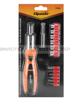 ОТВЕРТКА РЕВЕРС + НАБОР БИТ (14предм. CrV) "Sparta" 115565