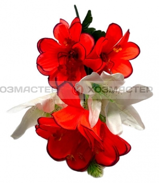 БУКЕТ МИКС 5-ГОЛ. 51см ЛИЛИЯ БЕЛАЯ+КАМЕЛИЯ КОРАЛ. С СИРЕН.КРАЕМ 24-5-5