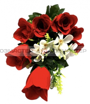 БУКЕТ РОЗА 9-ГОЛ. 54см КРАСНАЯ+БЕЛЫЕ МЕЛКИЕ ЦВ. F-212-9